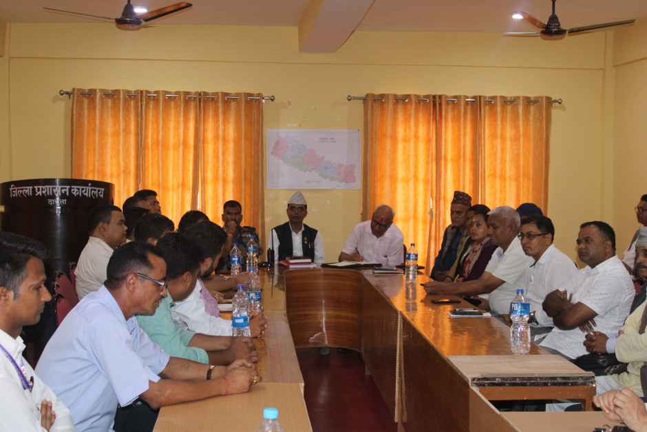 मिति २०८१।०४।१५ गतेका दिन जिल्ला प्रशासन कार्यालय दार्चुलामा बसेको जिल्ला विपद् व्यवस्थापन समितिका बैठकमा लिएका तस्विरहरु