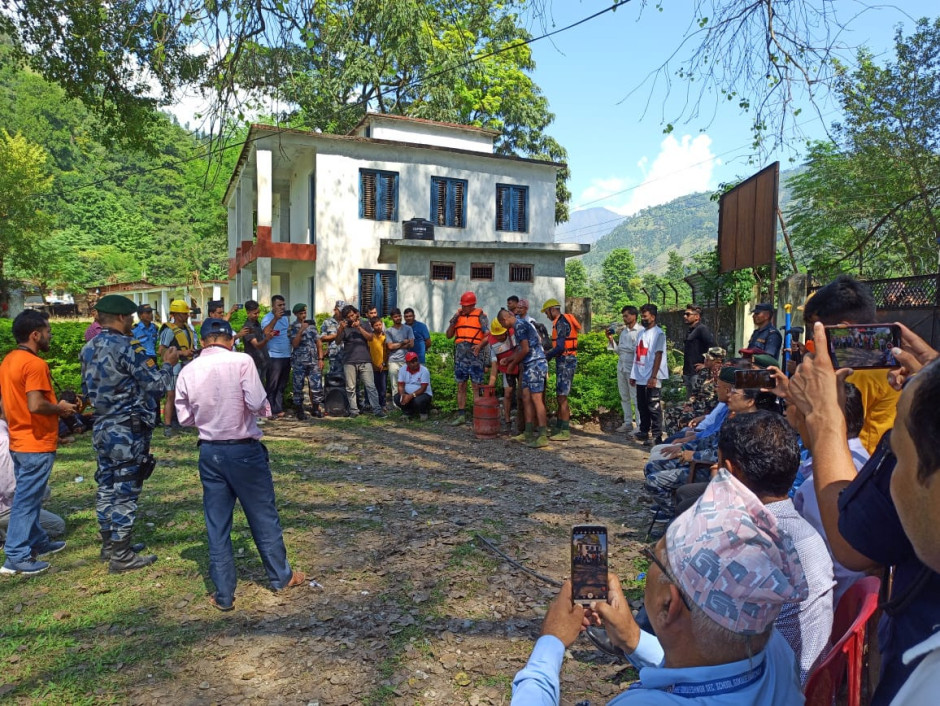 विपदको समयको उद्धार सम्बन्धि व्यवहारिक अभ्यास; ग्यासबाट आगलागी भएको; नदिमा डुबेको र भुकम्पको क्षतिबाट जोगाउने प्रयासको लागि आज मिति २०८०।०६।१८ गतेका दिन शैल्यशिखर नगरपालिकामा अभ्यास कार्यक्रम सम्पन्न भएको छ ।