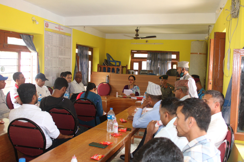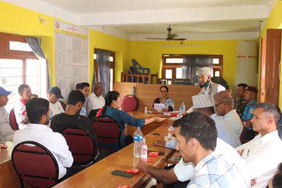 आज मिति २०८०/०२/२८ गतेका दिन जिल्ला विपद् व्यवस्थापन सम्बन्धमा जिल्ला स्थित DEOC र स्थानीय तहमा LEOC लाई चलयमान बनाई विपद व्यवस्थापन क्षेत्रमा क्रियाशिल गराउन जिल्ला स्थित DEOC र स्थानीय तह LEOC का प्रमुख/प्रतिनिधि तथा अन्य सरोकारवाला निकायसँगको समन्वय बै