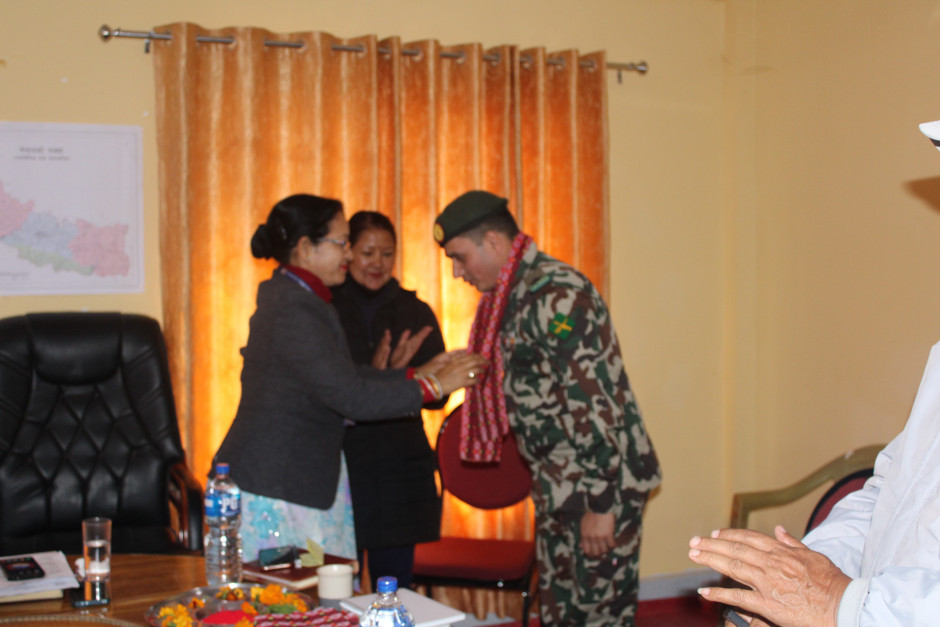नेपाली सेना, गुरु गोरख गुल्म, खलंगा व्यारेक, दार्चुलाको गुल्मपतिको जिम्मेवारीको रुपमा आउनु भएका सेनानी/गुल्मपती श्री बुद्ध देबकोटा र स्वास्थ्य कार्यालयमा आउनु भएका कार्यालय प्रमुखको स्वागत कार्यक्रम