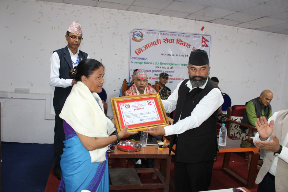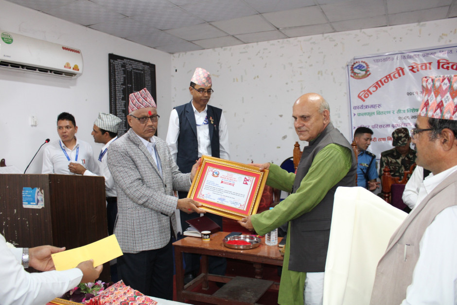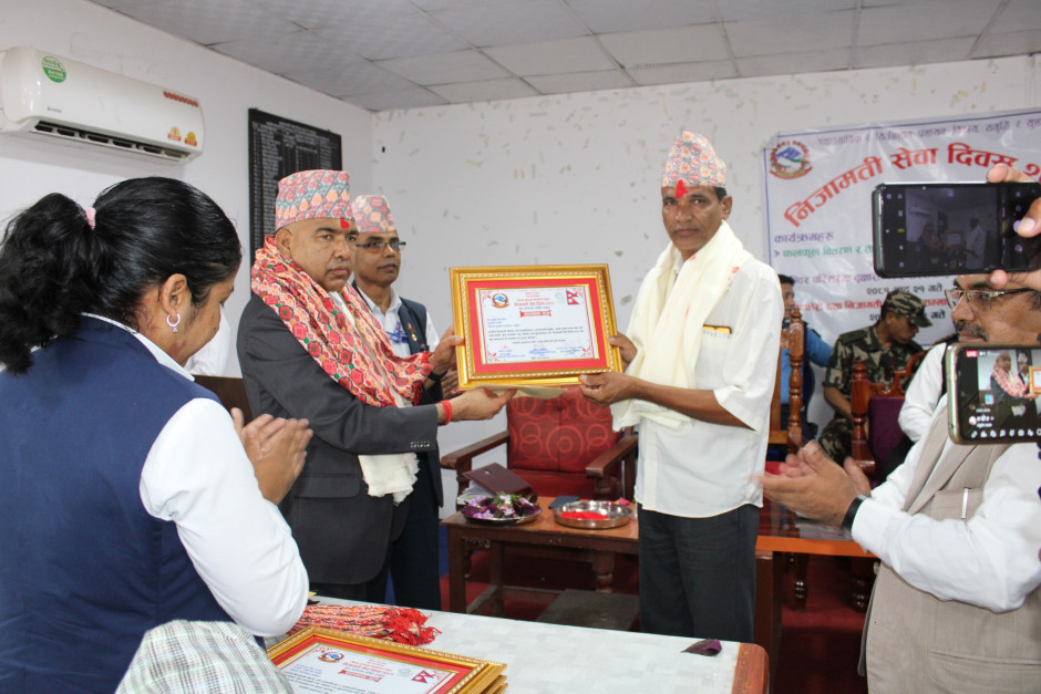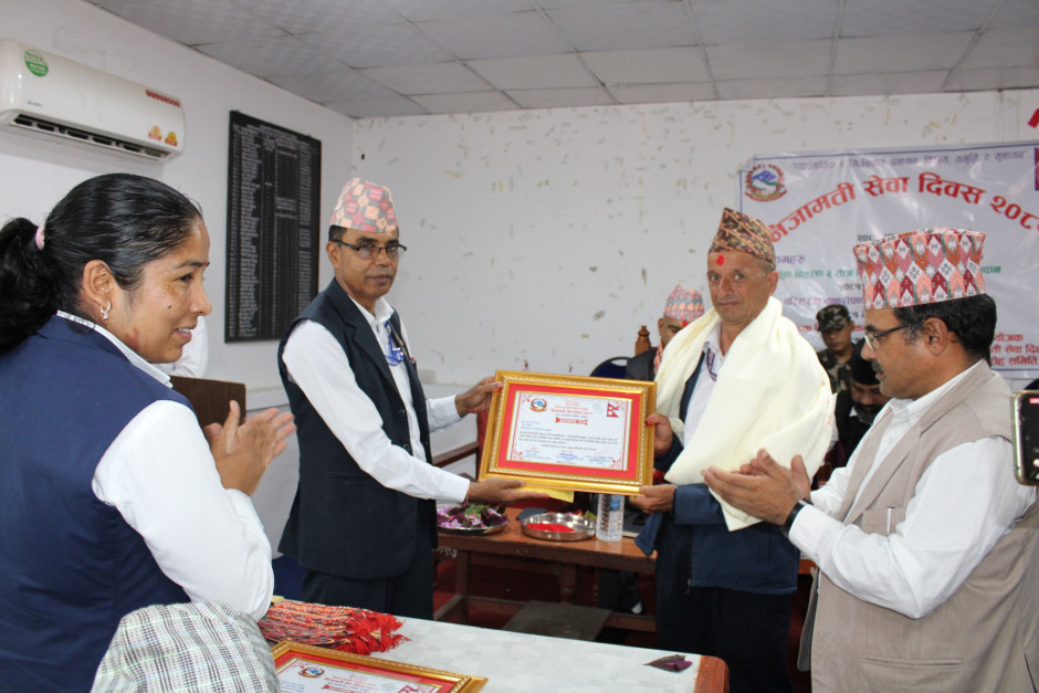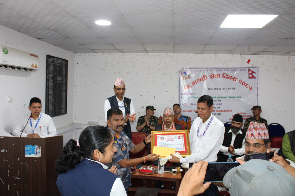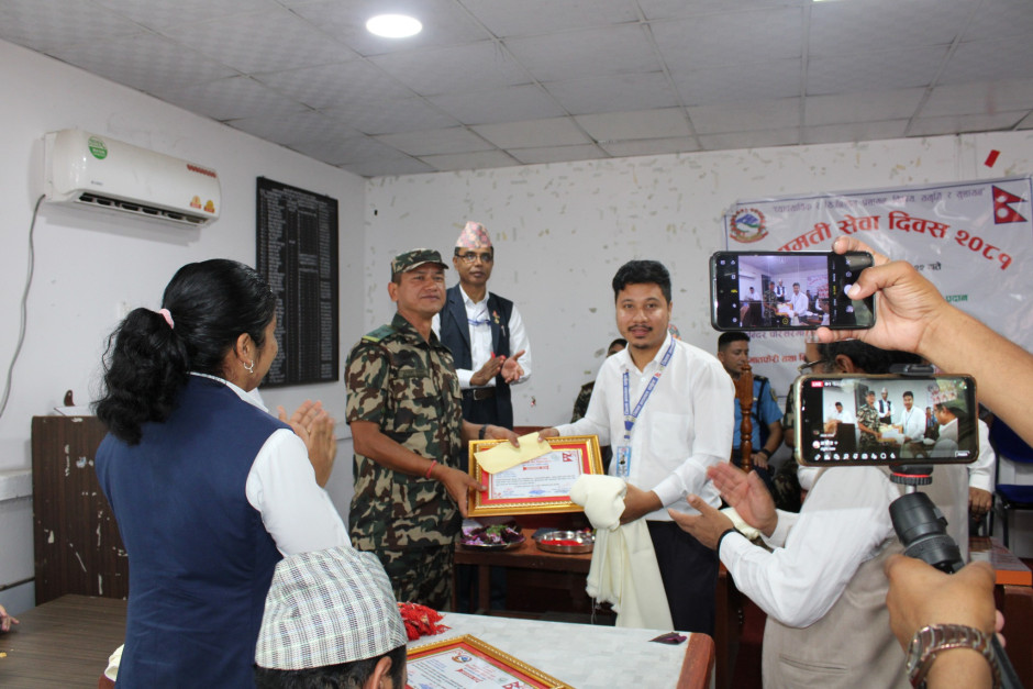 निजामती सेवा दिवस २०८१ को अवसरमा अनिवार्य अवकाश हुन १ वर्ष भन्दा कम समयावधि भएका 6 जना कर्मचारीलाई प्रशंसा पत्र प्रदान गरि सम्मान गरिएको
