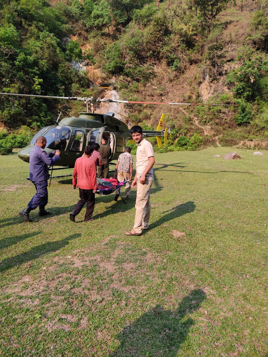 लेकम गापा सर्मौली स्वास्थ्य चौकीमा प्रसुती भएपश्चात महिलालाई अत्यधिक रक्तश्राव भई हेलिकप्टरबाट उद्धारका लागि सुर्खेत लग्दै