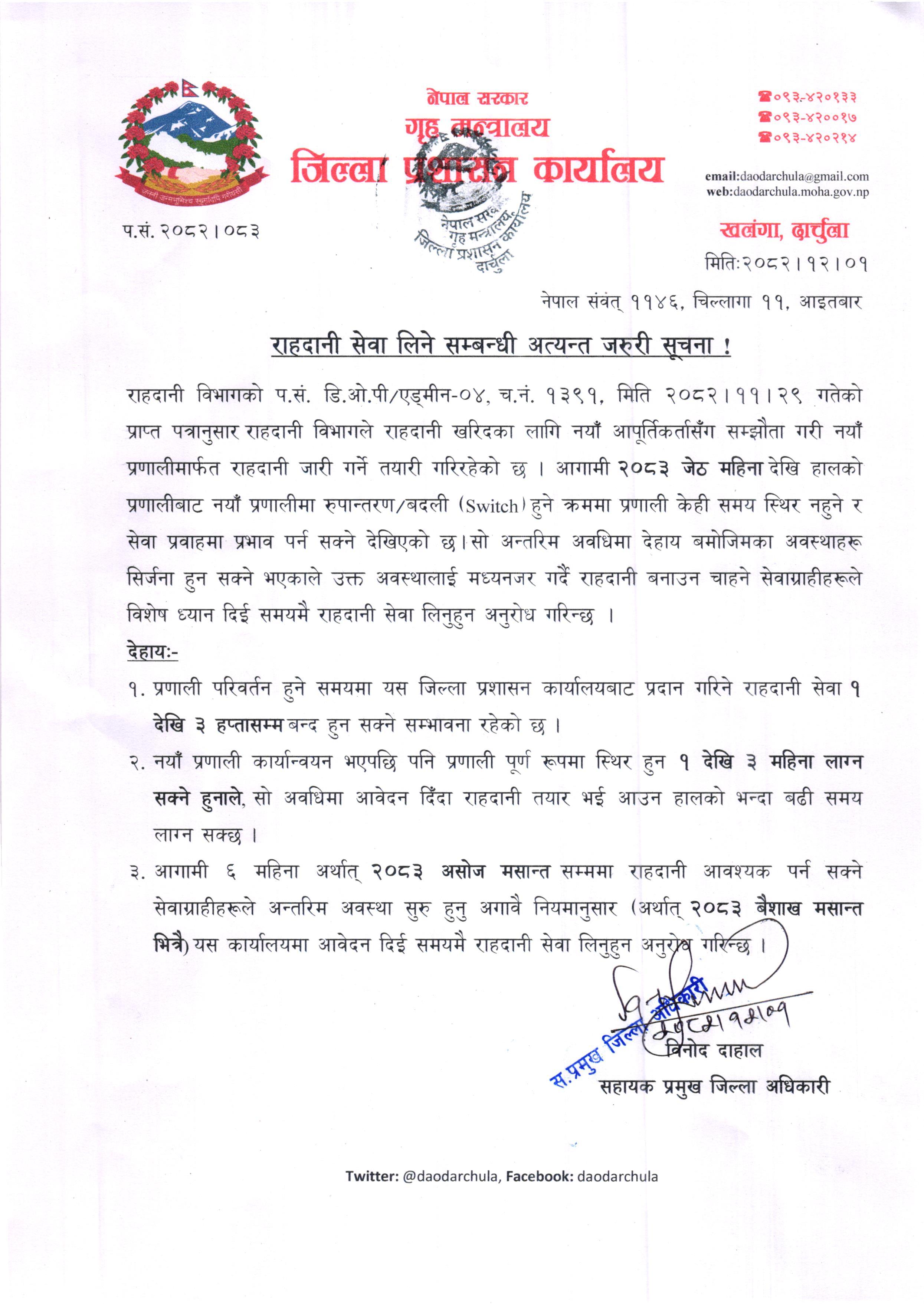 राहदानी सेवा लिने सम्बन्धी अत्यन्त जरुरी सूचना !